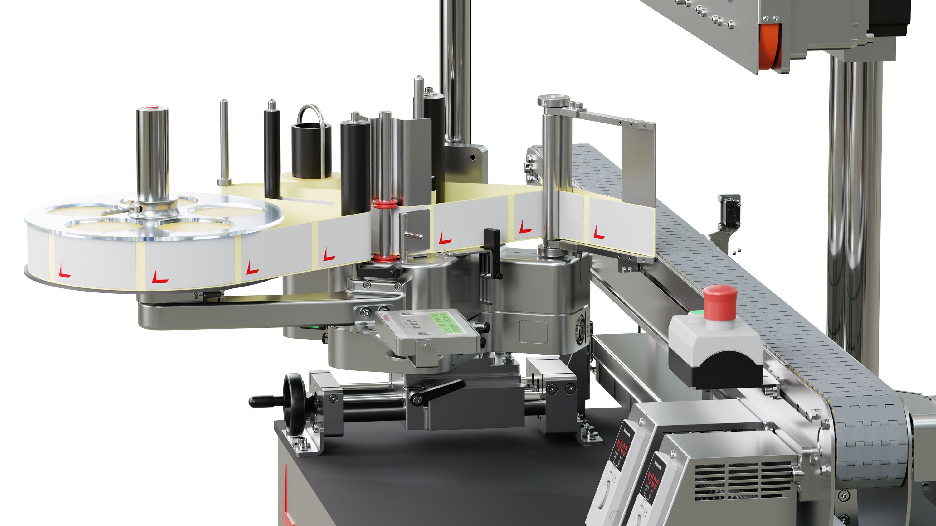 La ligne d’étiquetage automatique industrielle Geset 213 conforme à la norme CE a été spécialement conçue pour une convivialité maximale et une intégration facile dans les lignes de production existantes. L’installation modulaire étiquette les produits de manière fiable sur une face. Le système de convoyage intégré, y compris le convoyeur de tête réglable en hauteur, assure un flux de produits stable et constant lors du processus d’étiquetage. L’étiquetage est assuré par un système de pose d’étiquettes Alpha HSM à grande vitesse. Grâce à l’écran tactile central ainsi qu’à une commande à champ proche, le contrôle est intuitif : parfait même pour le personnel peu formé. Un changement rapide de rouleau et de format réduit les temps d’arrêt et augmente la flexibilité.
