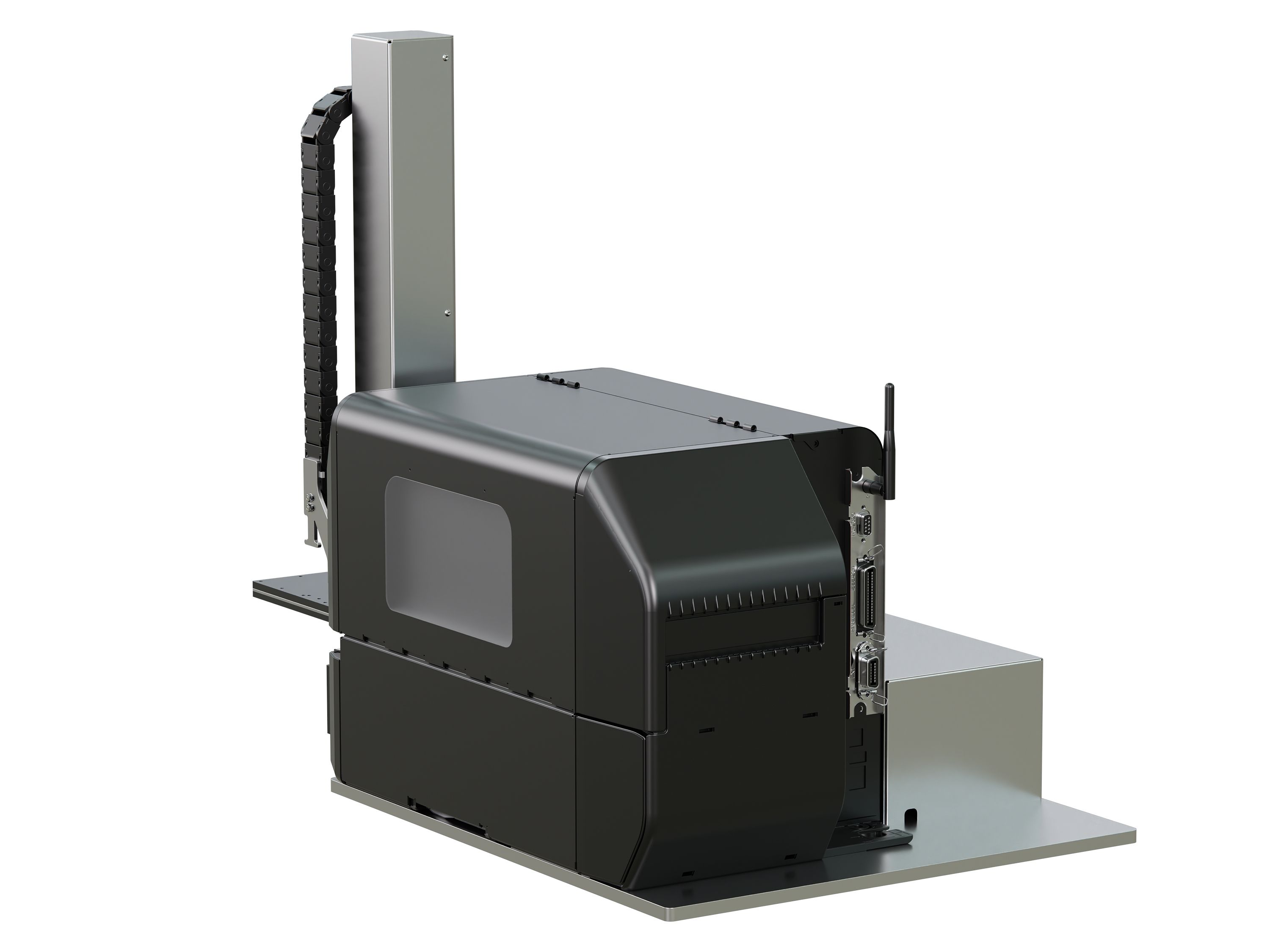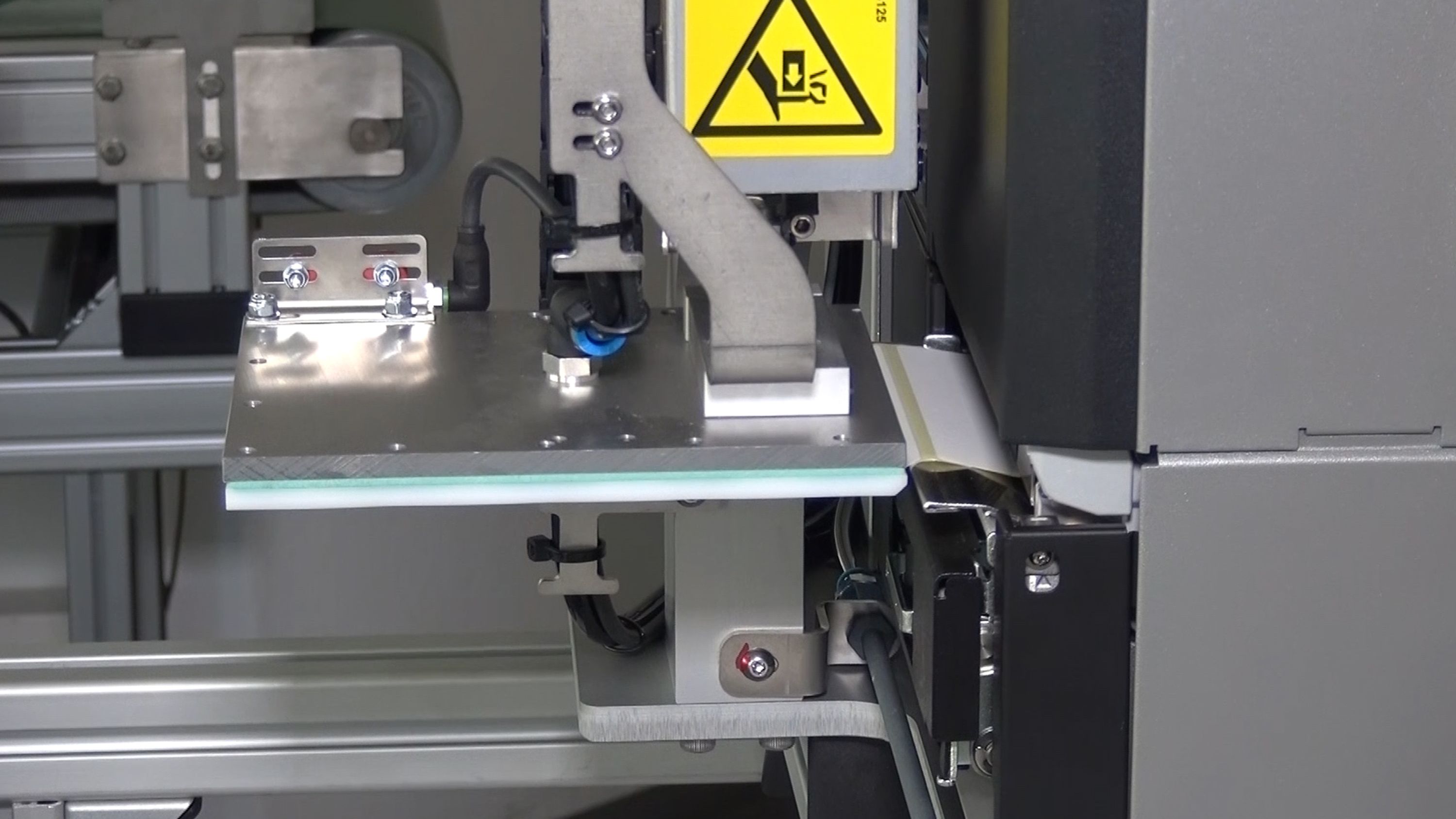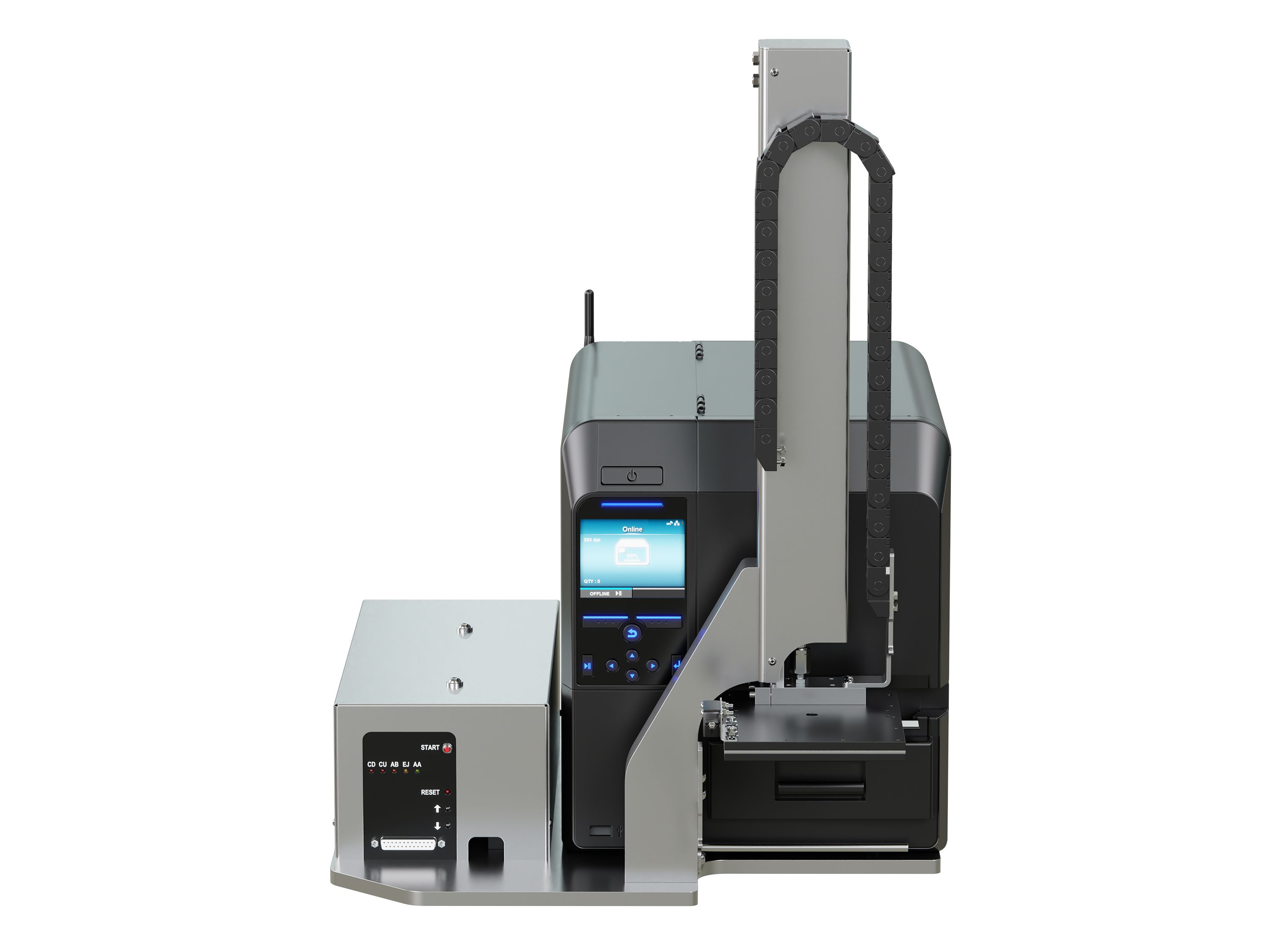 Het systeem controleert de aanwezigheid van het etiket op de stempelplaat. De geïntegreerde sensor herkent automatisch verschillende producthoogtes.