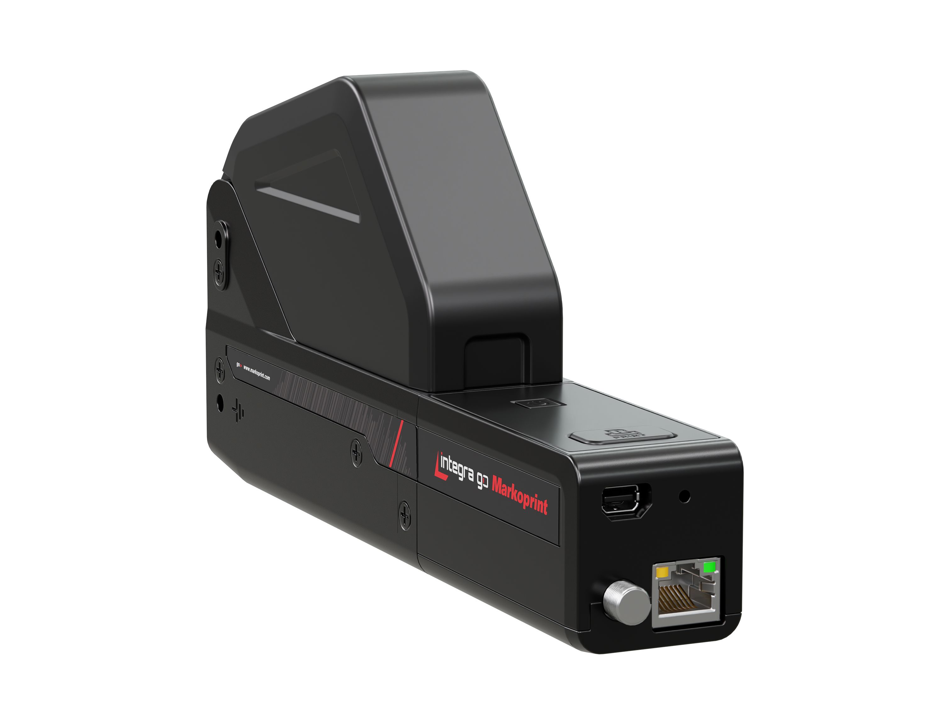 De intuïtieve bediening met één knop maakt het printen met de Markoprint integra go eenvoudig, zelfs voor ongeschoold personeel. Met één druk op de knop kunnen tot drie verschillende opgeslagen printteksten, inclusief lettertypen, doorlopende nummers, barcodes of logo’s, worden opgeroepen. De printgegevens worden vooraf via USB-stick of Ethernet rechtstreeks vanuit het bedrijfsnetwerk naar het apparaat overgebracht. Printlay-outs kunnen snel en eenvoudig worden gemaakt met de Markoprint integra Command Software.