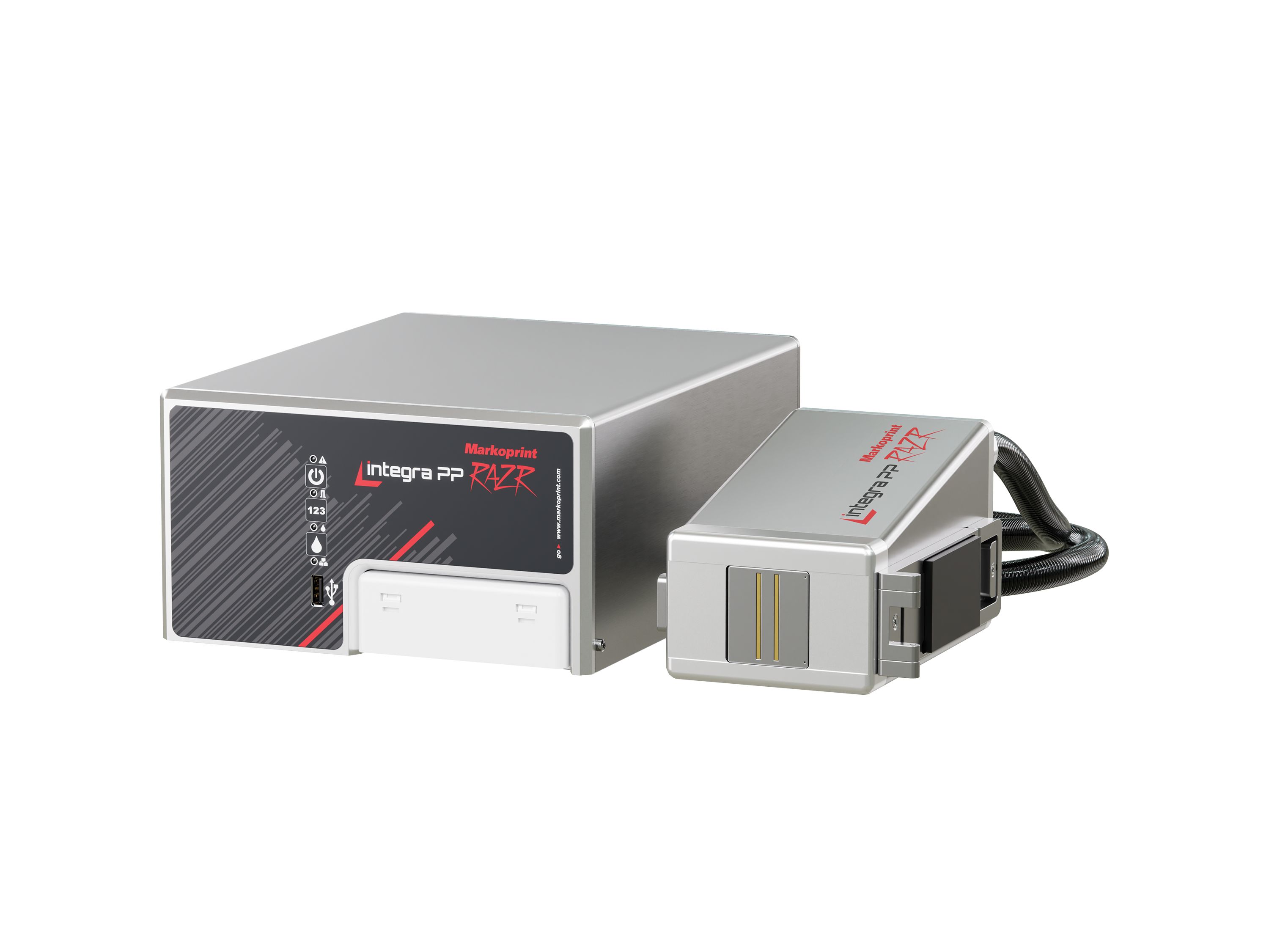 De Markoprint integra PP RAZR inkjetprinter levert etiketten met een bijzonder hoge resolutie van 600 dpi. De piëzo-inkjetprinter gebruikt solventinkten die kunnen worden gebruikt voor contrastrijke etikettering van zowel absorberende materialen zoals karton als niet-absorberende, gladde oppervlakken zoals metaal en plastic. Twee functies zorgen voor een continue productie: cartridges kunnen worden vervangen zonder te stoppen en twee afzonderlijk regelbare spuitkanaaltjes zorgen voor redundantie.