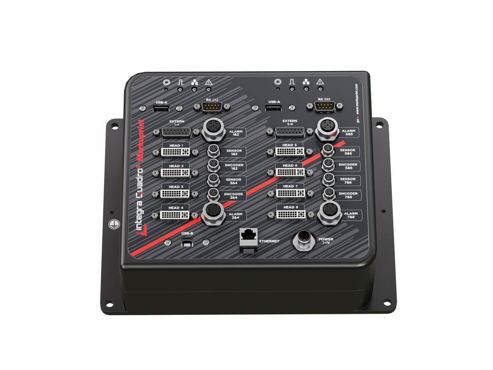 De Markoprint integra Quadro2 heeft een compact ontwerp en is uitgerust met verschillende montagemogelijkheden: hij kan eenvoudig direct op de productielijn worden gemonteerd of worden geïntegreerd in schakelkasten en machineconcepten van een hoger niveau. Afhankelijk van de aangesloten printtechnologie is een maximale printsnelheid tot 240 m/min mogelijk.